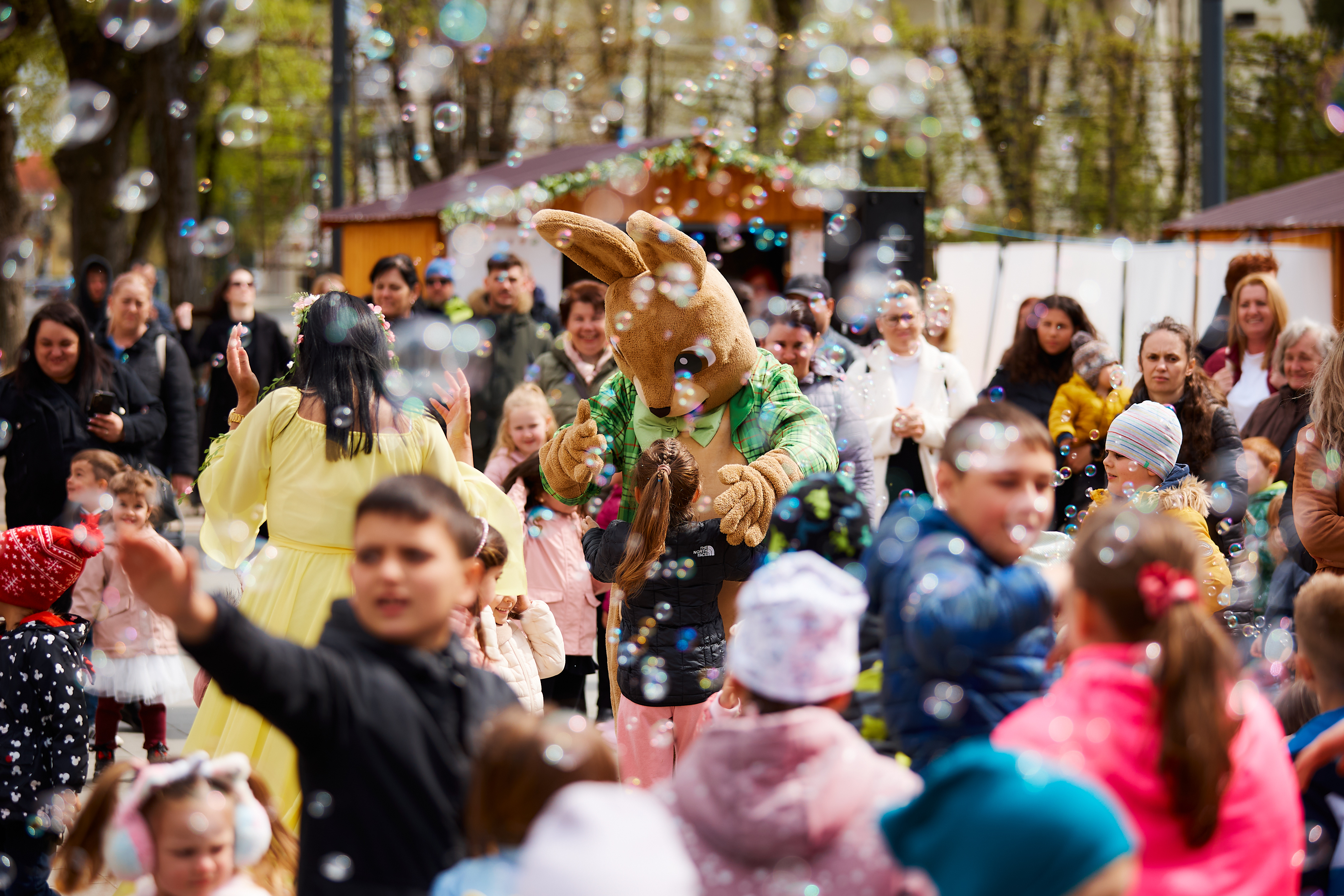 Zâna Primăverii și Iepurașul Țup-Țup au adus zâmbete pe chipul copiilor pe parcursul unei întâlniri de neuitat organizate azi la Târgul de Paște din Satu Mare!